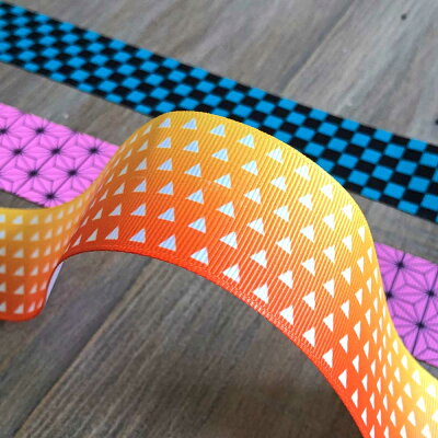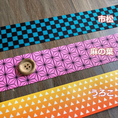 市松模様・麻の葉・うろこ 広幅グログランテープ生地 鬼滅の刃風(キャラクター・コスプレ・炭治郎・ねずこ・我妻善逸)ブラック/グリーン ピンク イエローBL5