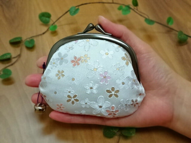 金襴 がま口 白地淡雪桜 金襴生地を使用しましたがま口です。