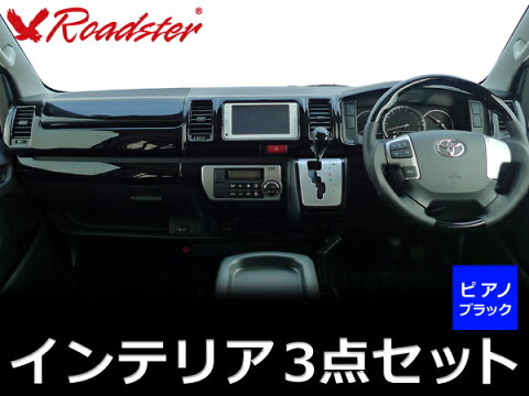 200系ハイエース 4型S-GL用 3Dインテリアパネル ステアリング シフトノブ 3点キット ピアノブラック 標準ボディ
