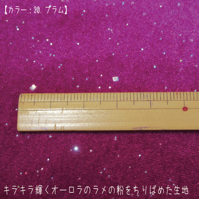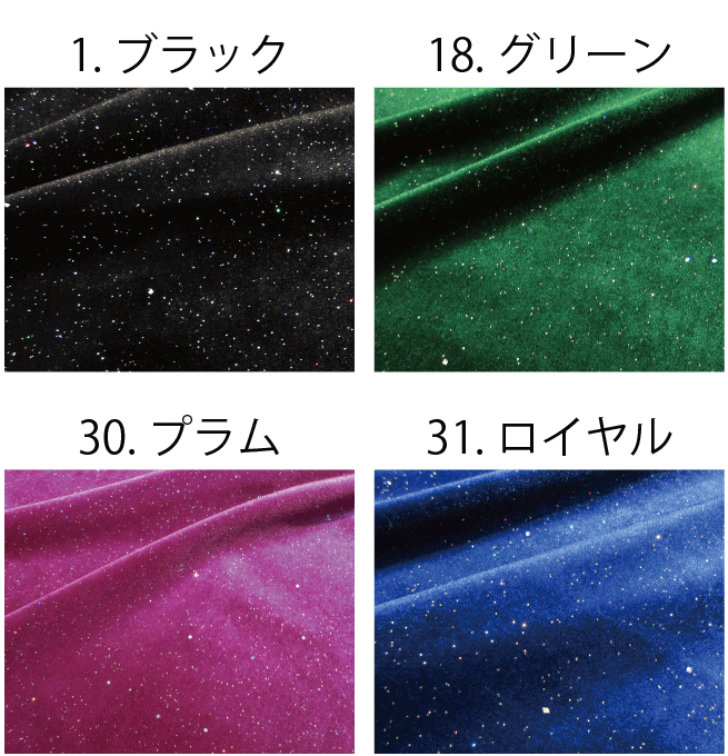 秋冬おすすめのキラキラ輝くベロア生地が入荷しました! シックなカラーのベロア生地にオーロラのラメの粉をちりばめた生地です。
