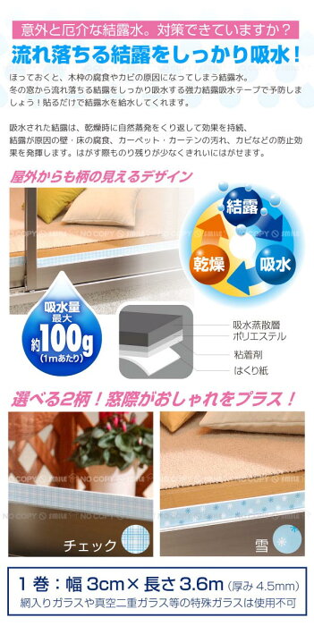 【在庫処分】結露吸水デザインテープ【ポスト投函送料無料】/ 結露 テープ 結露吸水デザインテープ 結露テープ 結露対策 窓 ガラス 吸水 吸水テープ 乾燥 ガラス掃除用品 チェック 雪 カビ防止 腐食防止