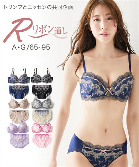 【期間限定 最大20%OFFクーポン有】 ブラジャーショーツセット (A70/M-F80/L) リボン通し ブラ ショーツ セット ( トリンプ ) ニッセン 女性 下着 レディース パンツ 谷間 盛れる トリンプ ブラセット かわいい プチプラ Aカップ Bカップ Cカップ Dカップ Eカップ Fカップ