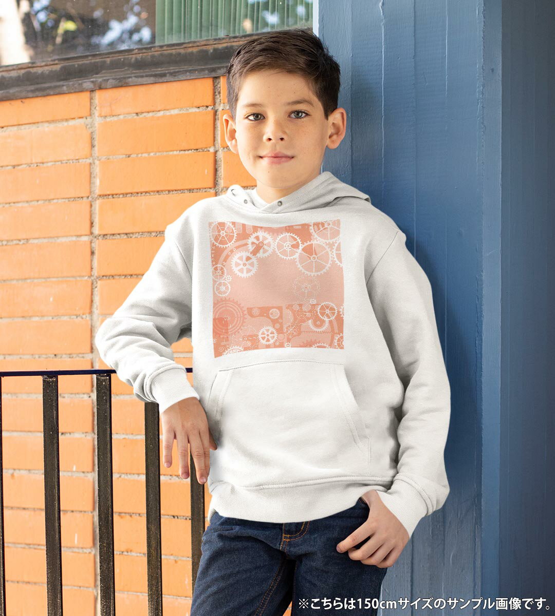 パーカー キッズ ホワイト グレー ブラック デザイン 110 130 150 parker hooded sweatshirt フーディ 白 黒 灰色 子供 男の子 女の子 008665 歯車 オレンジ 模様