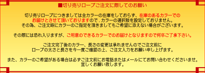 ※計り売りのロープにつきましては、ご注文完了後の変更・キャンセル等は承れません。