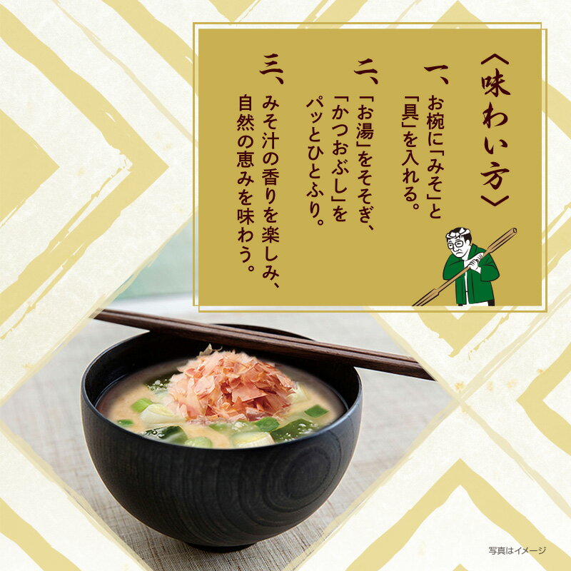 味噌蔵に眠っているじっくり熟成された味噌に、具を入れてお湯を注ぎ、最後にかつおぶしをパラッとひとふり。