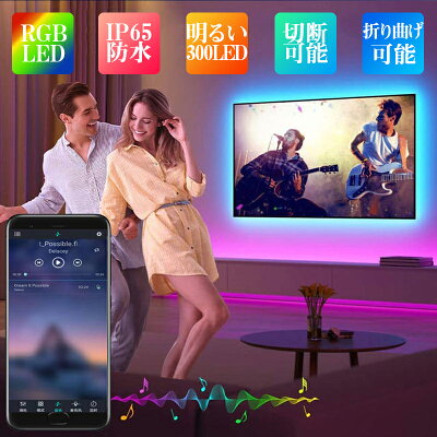 【全店3000円以上ご購入で15%OFF】【楽天1位&ナノマジックテープ 3m 付】ledテープライト テープライト RGB 間接照明 5米 照明テープ ライトテープ リモコン44キー 20色 300個LEDライト搭載 調光可能 5M 簡単設置 防水 切断可能 折り曲げ 長持ち お誕生日 パーティー